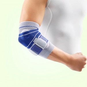 Commonly used by athletes suffering from conditions such as golfers elbow and tennis elbow, the EpiTrain® Elbow Support uses compression and stimulation to relieve pressure and pain. The special compression sleeve contains visco-elastic pads that activate and stimulate the muscles, and two shaped inserts that surround the lateral and medial epicondyles of the elbow. These inserts exert a gentle compression to the tissues of the elbow joint and relieve pressure on the epicondyles. As a result, blood circulation is improved which can reduce swelling and irritation. Injured muscle is treated and the area around the elbow can breath due to the breathable knit sleeve.